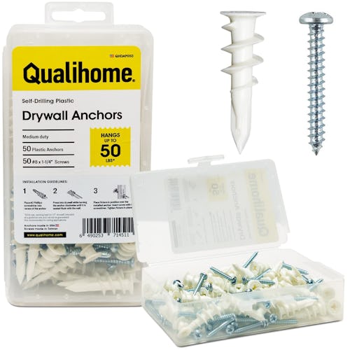 Qualihome Heavy Duty Plastic Self Drilling Drywall Anchors and Screws Kit