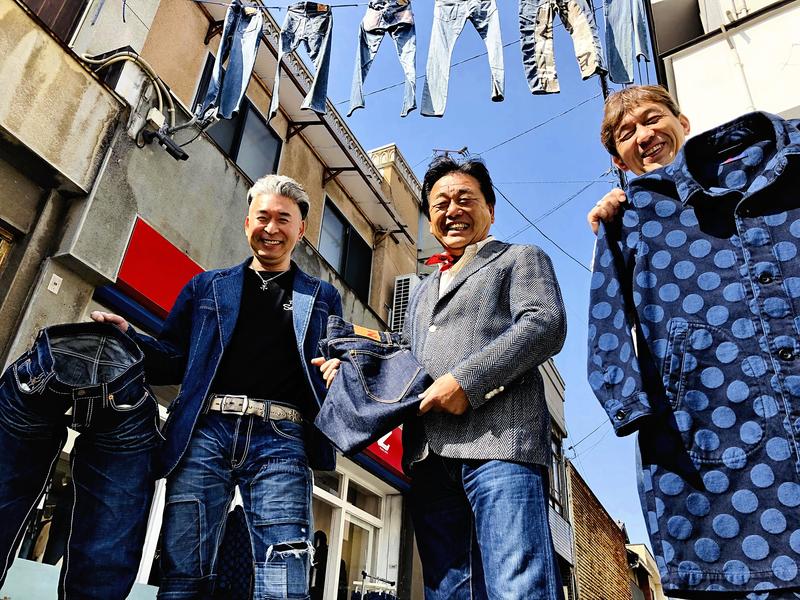 KURASHIKI, Okayama -- Many pairs of jeans were flapping against a blue sky in the Kojima area in Kurashiki, Okayama Prefecture, known as "the birthplace of Japan-made jeans."