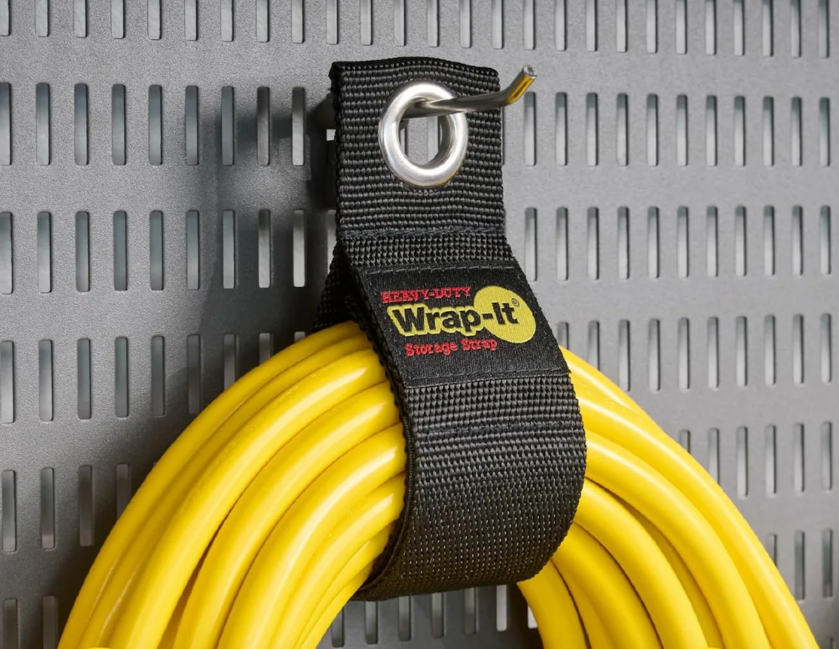 Disorder often starts with one item that is hard to store. In the garage, that item is often a hose, long extension cords, or power tools. These storage straps turn all of those items into hangable packages. Wrap them up, hang them from a hook, and get them off the floor. The rest of your organization will be easier to maintain, and you’ll be able to find them all at a glance. Choose from lots of sizes and bundles.
