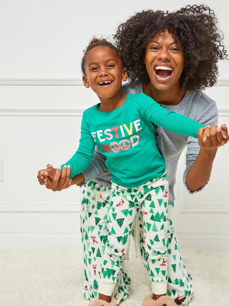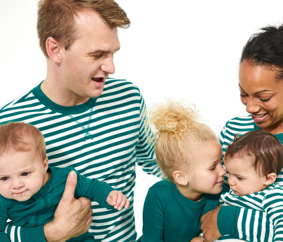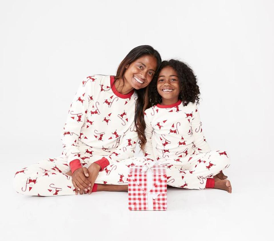 Not a huge fan of busy patterns? Opt for this combination of striped and solid pieces from Primary. They’re all made from certified organic cotton that’s so soft, you’ll probably find yourselves wearing these well into the New Year. FYI, all holiday PJs are 50% off on Primary’s site right now.