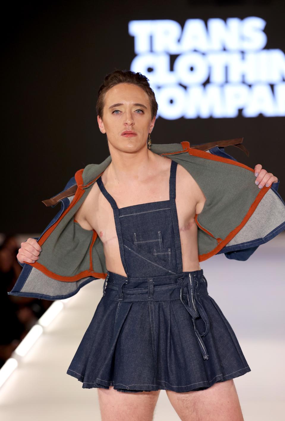 One of the designers on display, Trans Clothing Company, is one of the first trans-inclusive designer brands, has been in business since 2019 and a part of NYFW since 2020.
