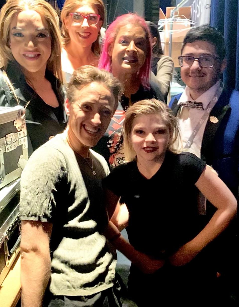 After the show for Trans* Clothing Company, Noella changed out of her midriff-bearing ensemble and met me backstage, where she posed for photographs with her parent and the other models profiled in this report: Seleste A. Loparo, Livia Wolfe, Fallon Fox and Lex Pe’er Horwitz.