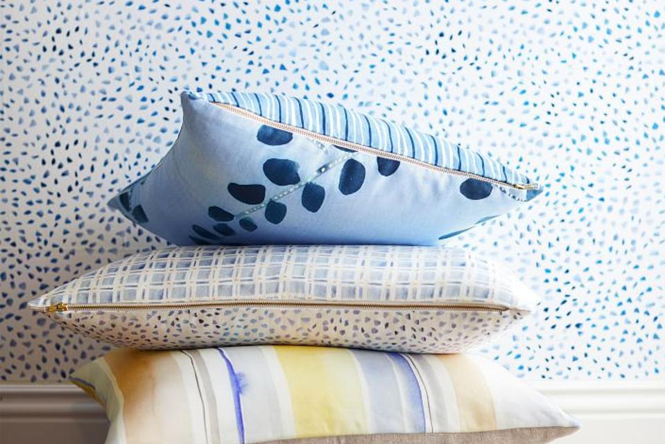 For those times when you’re eyeing polka dots but don’t want something with such definitive circles, there’s this removable polyester option from designer Rebecca Atwood. The design features whimsical, hand-painted tonal flecks in soothing blue tones. Fun fact: The look of the wallpaper was originally painted in Atwood’s sketchbook before making its way onto rolls. It’s also available in grey and peach shades.
