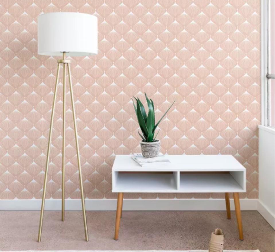Want to add pink to a room without being too saccharine? This stick-on, woven polyester wallpaper features a bulb design on a pale pink background that works in living rooms, dining areas, nurseries...just about everywhere. The paper is crafted with water-based, non-toxic inks in a matte finish, and comes in three different floor-to-ceiling sizes for a quick and easy install.
