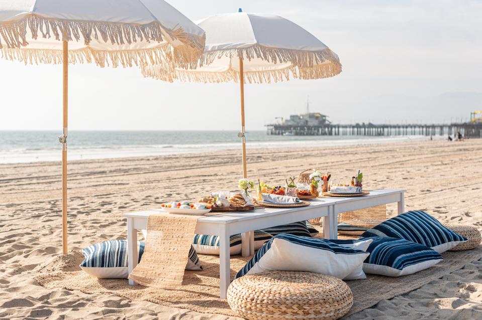 Shutters on the Beach is a Southern California evocative of quintessential Cape Cod cottages. Their classic picnic package, Beachside Bliss, takes advantage of the miles of sandy beach outside the resort’s doors. This luxe beach picnic includes coastal chic décor, including pillows to sit on, a small table, and an umbrella for the sun. The menu features dishes such as Thai chicken lettuce wraps, Mediterranean platters, charcuterie with cheese, and mini lobster rolls.