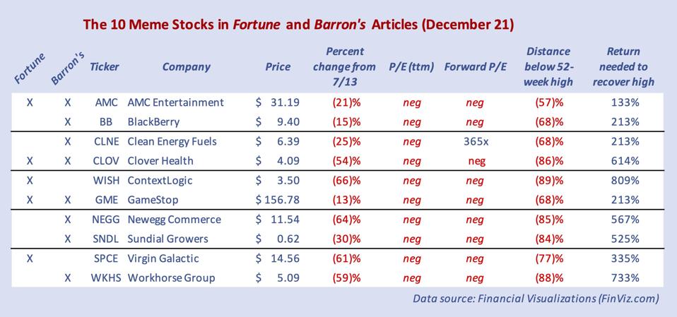 “Barron's and Fortune published articles praising the meme stock investing approach. They are important contrarian indicators. All their examples of what went right are collapsing now.