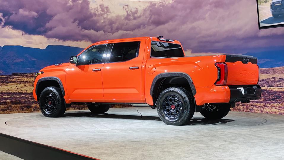 Toyota has all kinds of numerical things to say about the new Tundra. The truck will be able to tow up to 12,000 pounds, a 17.6-percent increase. There will be two different four-door options for the cabin and three lengths for the bed: 5.5 feet, 6.5 feet and 8.1 feet. And a maximum payload capacity of 1,940 pounds, an 11-percent increase.