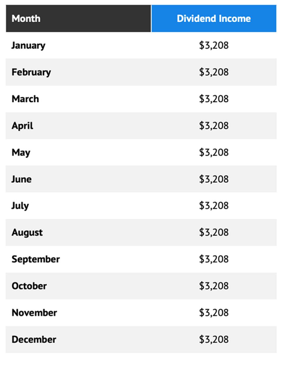 These are staples of every investor’s portfolio, but a route to a steady income stream they are not! Here’s what your monthly payouts would look like with this quintet if you held, say, $100,000 in each one, for a $500,000 total investment: