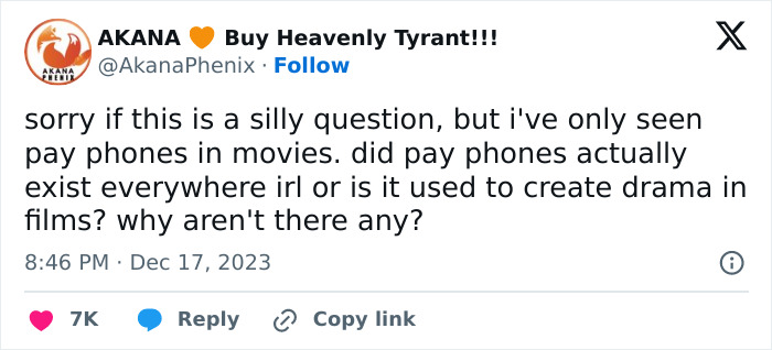 All of that was done by an X user, @AkanaPhenix. Back in December of 2023, she tweeted asking whether pay phones actually existed. To be more precise, she asked if they were only created for drama in movies.