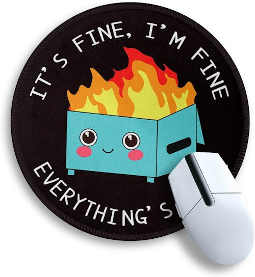 Your workday might be a hot mess, but at least your mouse pad is in on the joke. This round masterpiece features the iconic dumpster fire graphic, turning daily chaos into desktop lolz. Perfect for anyone who loves to keep things real, one passive-aggressive click at a time. Grab it and make your workspace as extra as your group chats.