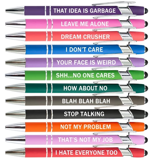 These Sarcastic Ballpoint Pens Are Basically Office Therapy (12-Pack)