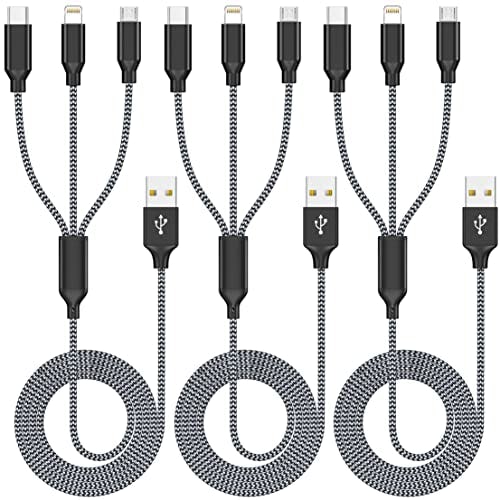 Multi Charging Cable 3Pack 4FT Multiple Charger Cable Rapid Nylon Braided Cord USB Charging Cable 3 in 1 Multi Phone Charger Cord with Type C Micro Lightning USB Connectors for Cell Phones