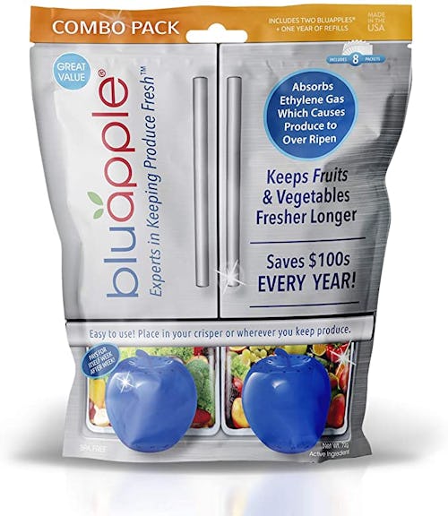 When you store these produce savers with your fruits and veggies, they absorb ethelyne gas, slowing down the ripening process. Each package comes with eight packets that last up to 90 days each, along with two reusable apple containers, so you'll be set for roughly one year.
