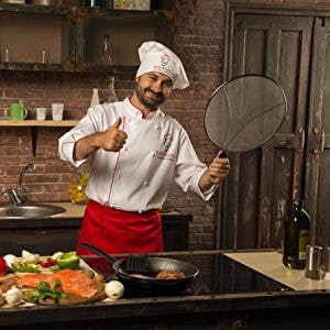 A splatter screen keeps your stove and counters (and self) clean and free of any wayward grease when cooking. This screen comes in four different sizes to accommodate most pans, and is made of durable stainless steel. It has a 4.6-star rating after over 30,000 reviews so really gets the job done.