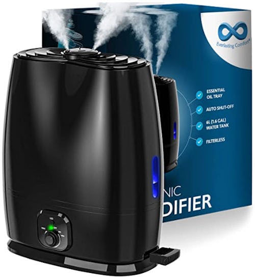 Add some moisture to dry spaces with this cool-mist humidifier that's also super quiet and looks a lot sleeker than most units out there. This unit happens to be filterless, and also includes a tray for essential oils if you happen to be fond of them. With a six-liter tank, this humidifier covers up to 500 square feet. It also comes in white.