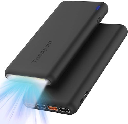 Not only is this portable charger really affordable, but it has five charging ports, so it can power up your most important devices at the same time. It features two USB-C ports and three traditional USB ports, so this brilliant little device can charge any device. And even though it's lightweight, it's extremely powerful. This device can charge an iPhone 12 five full times, and it even shows you how much power is left before it needs to be recharged.