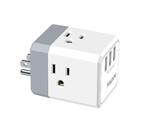 Instead of switching out plugs for all your electronics, this multi-plug outlet can charge all your devices at the same time. It features three standard plugs and three slots for USB ports, so this plug can charge up to six devices at one time. It can also generate 15 amps of power, which is enough to charge all of your devices, not not enough to overload them. Small and convenient, this plug is perfect for traveling.