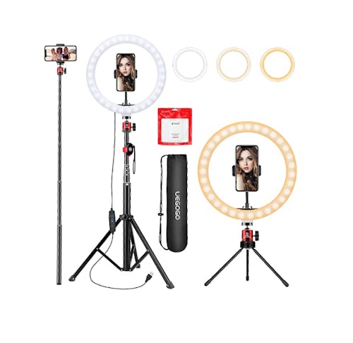 Not only does this tripod set come with a light-up ring, but you can detach it to create a portable selfie stick. This tripod features a 10-inch LED light ring that can emit warm, natural, and cool tones in multiple levels of brightness so you can find the best lighting for your photos and videos. It also comes with a Bluetooth remote that you can use to snap photos even when you aren't right next to your phone. And the best part? You can also remove the central rod to make a selfie stick that you can take on the go.