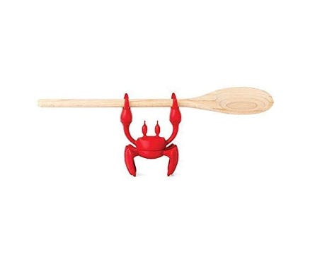 This cute crab holder is super handy in the kitchen. It features soft, flexible claws that can hold wooden spoons, silicone spatulas, and even kitchen knives. It can even sit on the edge of your pots and pans and lift the lids to literally let off steam. This little crab can hang out on your counters to hand you your tools.