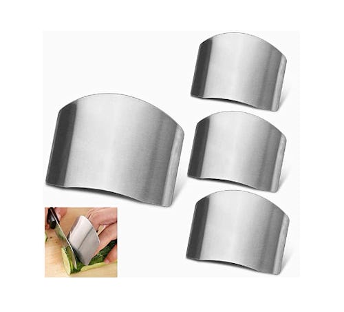 You don't have to deal with nicks in the kitchen with these stainless steel guards. To use, just insert your finger into the holder on the back side of the guard, then slice and dice your fruits and vegetables. The guard slants at the perfect angle to help protect your fingers while still allowing for a straight cut, and the stainless steel is virtually impenetrable. They also come in a pack of four, so you can share them with friends and family.