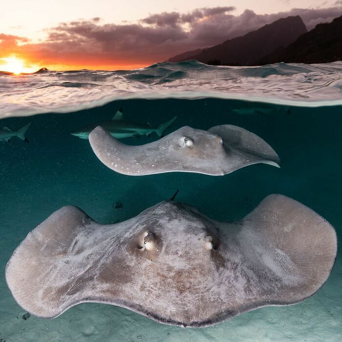 Jordan Robins is an ocean photographer with a spectacular collection of sea life photos. Many of his images uniquely capture both the underwater world and the view above the surface, blending the two worlds in a way that truly stands out.