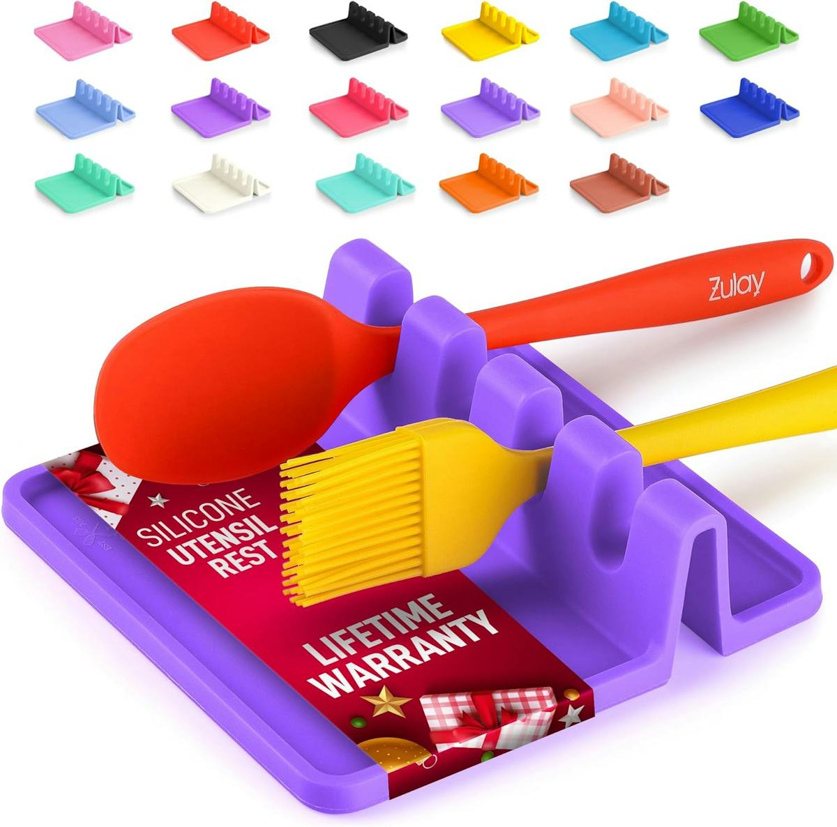 Set yourself up for cooking success with this silicone utensil rest that keeps all your tools by your side. There are four slots to hold anything from spatulas to spoons as well as a handy drip tray to keep your countertop free of bits of bolognese or curry. The silicone is heat-resistant and dishwasher-safe in addition to coming in lots of fun color options such as mystic violet or carnival grass.