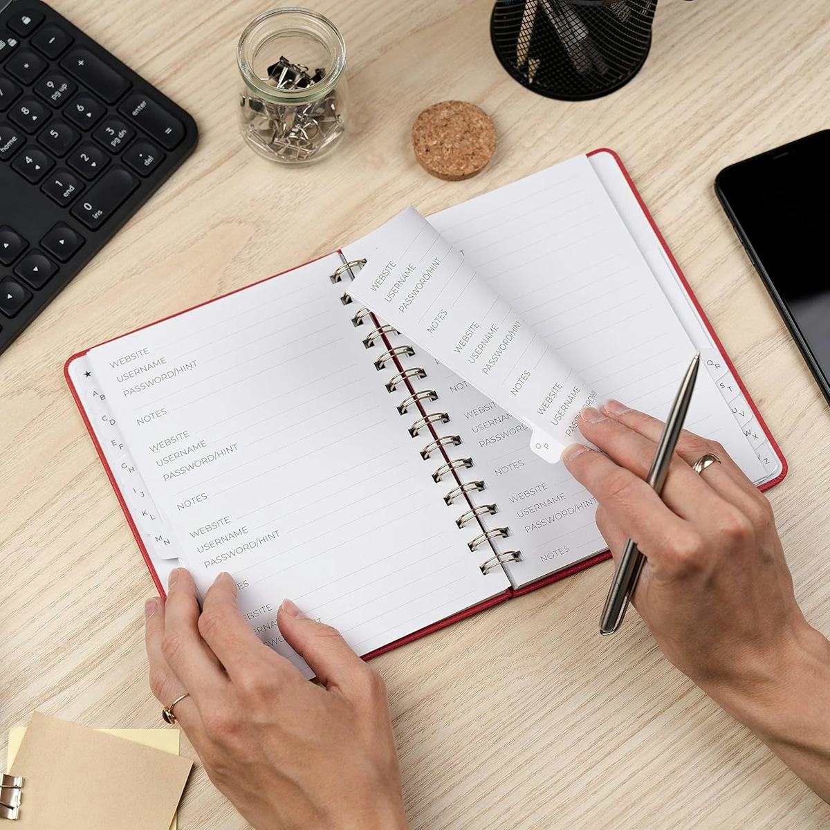 Clever Fox Password Book Spiral – Internet Address & Password Organizer with Laminated Alphabetical Tabs – Password Keeper Journal – Hardcover, Medium Size, 6.1x7.7” (Red)