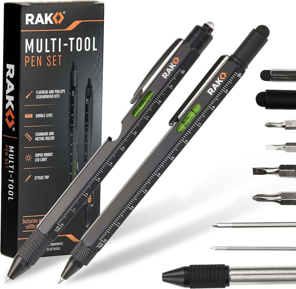 This multitool pen set lets you can carry around a ruler, bottle opener, LED light, stylus, bubble level, and screwdriver all at once without taking up much room in your pocket. Each of the pens is made of durable aluminum and the set comes with two ink refills.