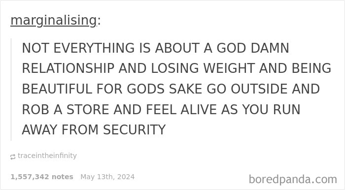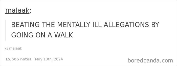 “I think one of the best and most fascinating things that’s come out of this is the realization that it’s not just a small group of sad, defective little weirdos skulking in the shadows, it’s everyone. There really is no “normal” in the traditional sense and most people are struggling with their mental health to some degree. It’s not looked down upon so much anymore as a weakness or a defect or a dirty little secret. I think the people who like my page like it because it's an embodiment and celebration of that,” they shared.