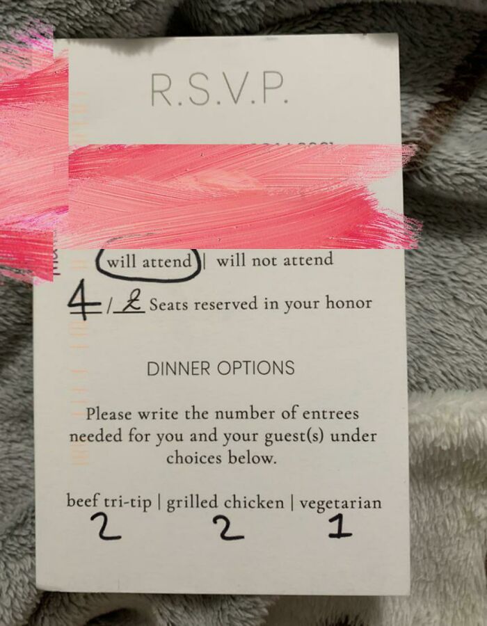 #57 Children Are Allowed At My Wedding, So I Have A Question In My E-RSVP About How Many Will Attend. This Couple Added 2 Extra Adults, Who Aren’t Invited, And Then A Plus One For One Of Them! I Didn’t Know I Needed To Specify An Age Range, It Seemed Self Explanatory To Me…