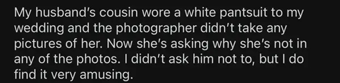 #1 A Guest Wore A White Pantsuit To My Wedding