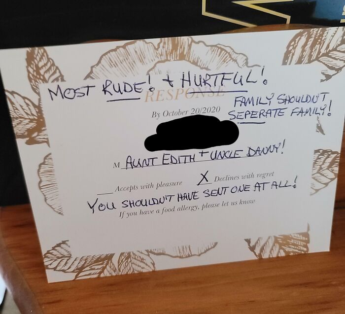 #58 Relatives Who Were Not Invited To Our (Gay) Wedding, Assumed They Were And Sent Us A Letter Condemning Our Marriage. We Responded In Kind