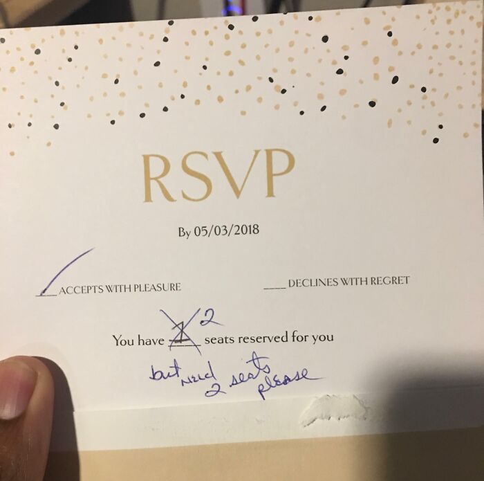 #42 A Girl I Haven’t Spoken To Since Graduating High School Just Straight Up Asked For A Wedding Invite