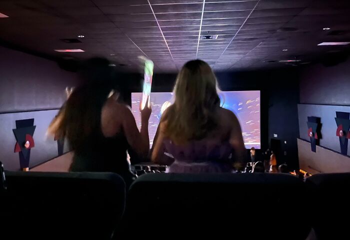 They ignored my pleas to sit down, and took selfie videos (with flash) the entire movie. A lovely experience.