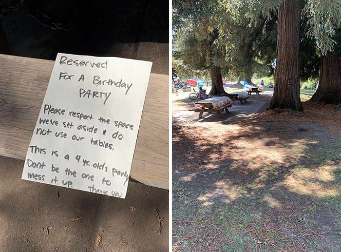 #26 Busy Public Park On A Hot Saturday/Labor Day Weekend. Seems Super Entitled. Park Has Been Open For 4 Hours And No Sign Of Them. All The Other Tables Are Full