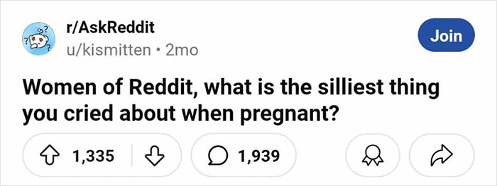 The author of the viral thread opened up to Bored Panda that she had no idea that her post would blow up the way that it did. "I enjoyed reading all the responses. Pregnancy can be a wild ride, and I figured it would be a safe space for women to share their stories. Plus, sharing creates community which creates confidence: life is easier to navigate if you don’t feel like you’re doing it all on your own," u/kismitten said.