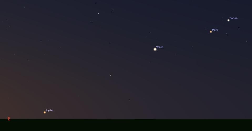 This week is all about planets. Mars, Saturn and Venus will all be visible before sunrise and as the week wears on they will appear to get closer to one another. We end the week with the planetary trio being joined by a fourth, the giant planet Jupiter, which will be visible low on the eastern horizon just before the Sun rises.