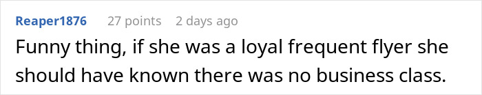 “My cousin came up with the business class trick in the heat of the moment!” the Redditor tells us. “He’s quick-witted and tends to have a dry sense of humor, so, when Karen refused to move, he decided to use a bit of ‘creative persuasion’ to reclaim his seat without escalating things too much.”
