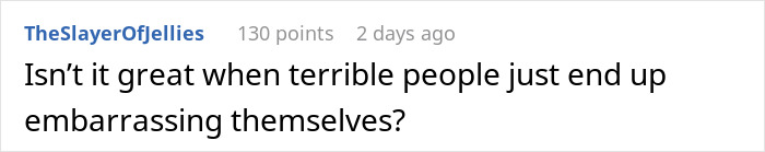 Since the Karen delayed the flight for almost half an hour, other passengers weren’t too happy with her antics either. “Once the Karen finally left, everyone around him was visibly relieved, and a few passengers even shared looks or whispered comments about how dramatic she’d been,” the Redditor relays their cousin’s experience to us.