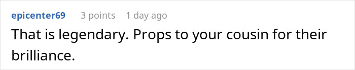 “My cousin’s story is a reminder that respecting other people’s space and possessions goes a long way—and that sometimes, a little creative thinking can defuse a situation better than confrontation,” they believe. “Also, in crowded spaces, it’s easy to feel anonymous and forget how your actions impact those around you, so, it’s a good reminder to stay considerate!”