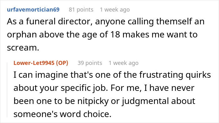 This explanation confused Grace. She asked whether the OP was actually still going to the concert and received a confirmation. Then, she got mad. She couldn’t believe that the author would even consider going to the concert when, in her words, she had just become an orphan.