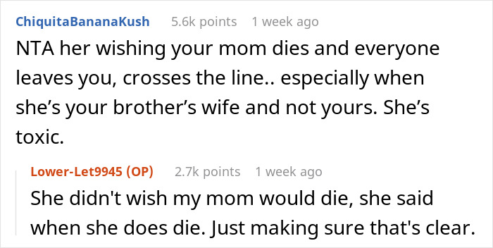 So, the OP didn’t take her sister-in-law’s words to heart, as she remembered how chaotic she acted when she lost her dad. But quite a few netizens did take it to heart. They were insulted on the author’s behalf by the SIL’s words wishing for her abandonment.
