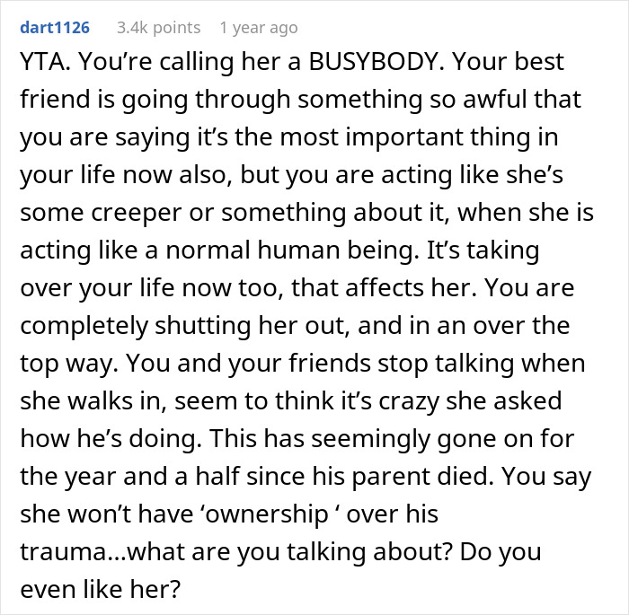 One man on Reddit was that source of support for his grieving friend. When it began causing problems with his fiancée, he put the story before people online and asked if he was the jerk for his actions. Bored Panda also reached out to Jill S. Cohen, a grief counselor who works with children and adults, to get her perspective on the situation.