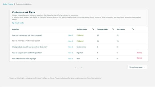 — Brands will have to register with Amazon’s Brand Registry, where they’ll see the Customers ask Alexa feature in Seller Central. The dashboard will show brands the most frequent asked customer questions so that they can set up answers for Alexa to respond with. Alexa then selects the most relevant answer to share with the customer.
