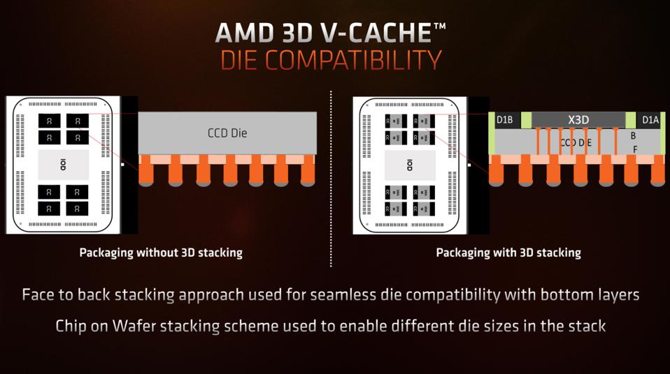 It's not just extra cache that can be stacked, but other components too. It should also be noted that Intel has a similar technology, called Foveros.