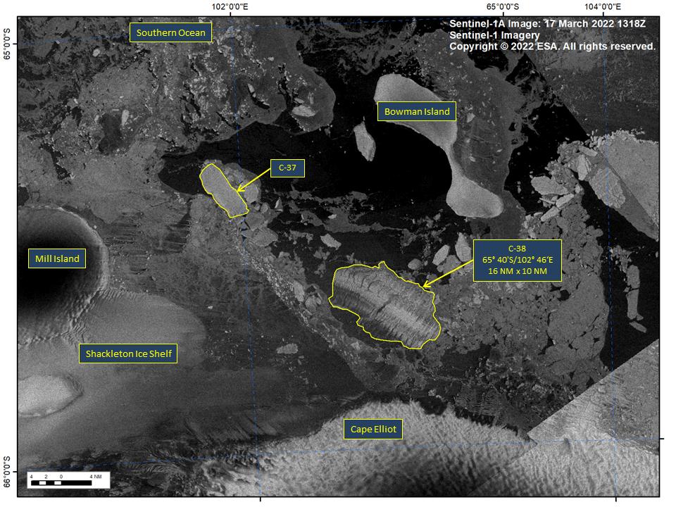 On March 17, the US National Ice Center confirmed that an iceberg labeled C-38 had broken away from the shelf.