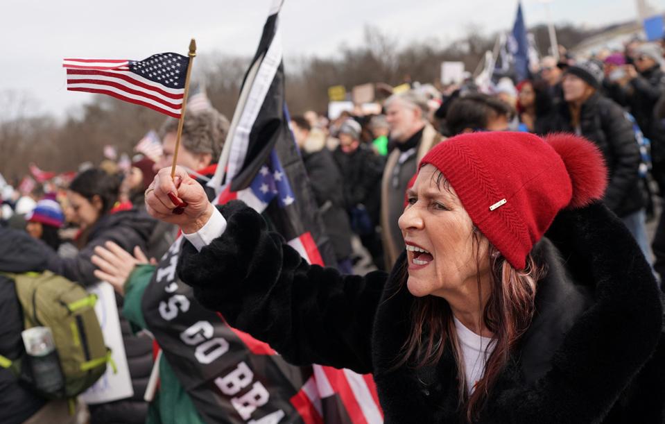Protestors marched from the Washington Monument to the Lincoln Memorial in Washington D.C. on Sunday in objection to the Covid-19 vaccine mandates, drawing an array of sometimes controversial speakers and groups.