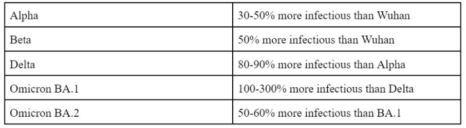Omicron was an unpleasant surprise in many respects. First, the sheer number of mutations in the Spike and throughout the genome yield other significant effects, such as resistance to many vaccines and modified cellular entry. Second, Omicron is now known to be not one, but a family of variants—BA.1, BA.2, BA.3, and the recombinant BA.4. Third, the Omicron family is more infectious than any variant preceding it. BA.1 is more infectious than Delta and BA.2 is more infectious than BA.1.