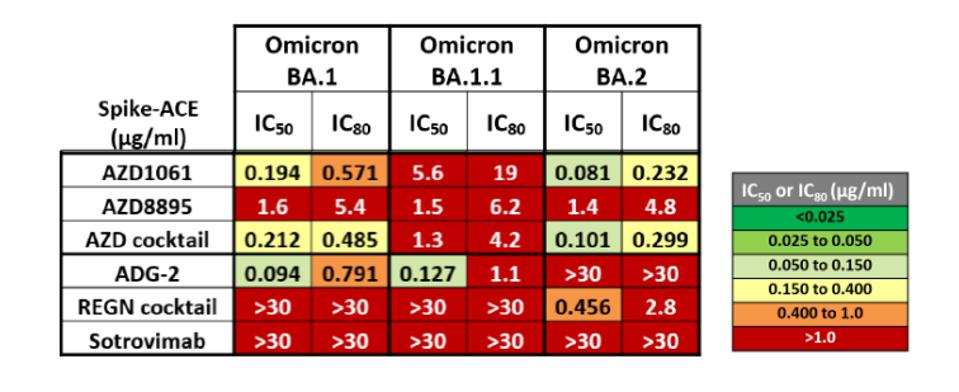Screening for the presence of anti-Spike antibodies in over 100 samples of sera donors, Fenwick et al. identified two monoclonal antibody candidates that showed promising results against previous variants of concern, including Alpha, Beta, Gamma, and Delta. They compared these two antibodies against currently available monoclonal treatments, such as the AstraZeneca combination cocktail, Regeneron cocktail, and sotrovimab.