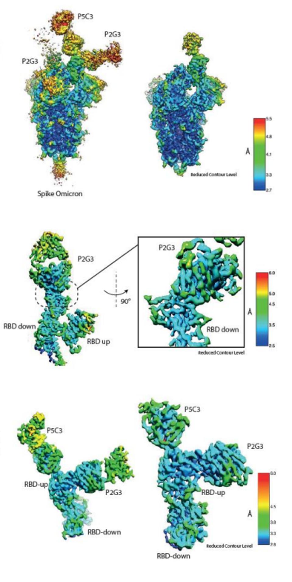 The two antibodies, P2G3 and P5C3, strongly neutralized not only the Wuhan strain of SARS-CoV-2, but also Alpha, Beta, Gamma, Delta, and, most notably, BA.1, BA.1.1, and BA.2 remarkably effectively. P2G3 was between 5 and 907-fold more potent at neutralizing the Omicron family Spike proteins as compared to other monoclonal therapies. P5C3 was slightly less potent than P2G3, but still more neutralizing than the other tested therapies.